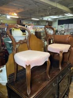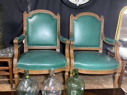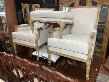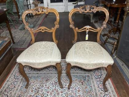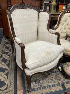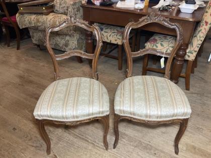 A pair of French walnut drawing room chairs.