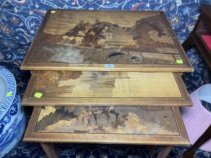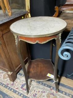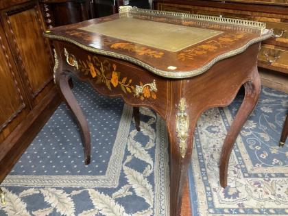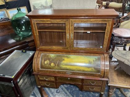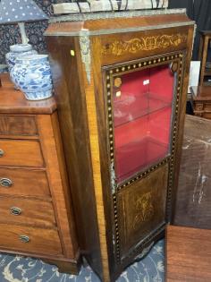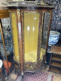 A French walnut and marquetry decorated vitrine.