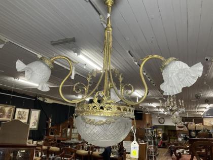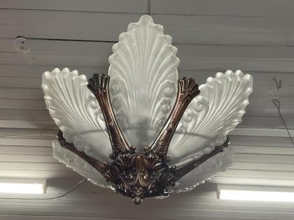 A French Art Deco copper and glass ceiling light.