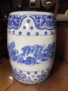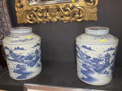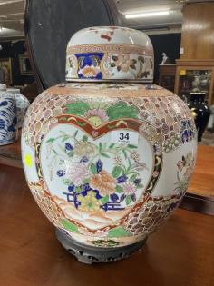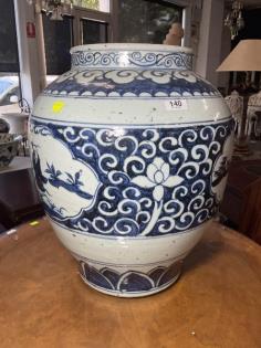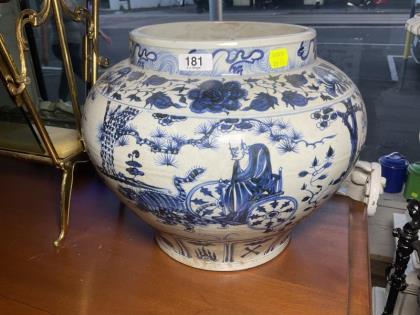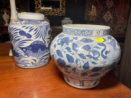 An Oriental blue and white ginger jar and cover.