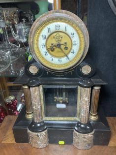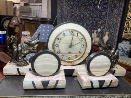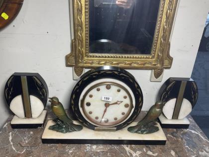 A three piece French Art Deco marble clock set.