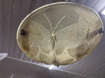 A signed French art glass coloured ceiling light.