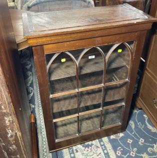 A Tudor oak and leadlight secretaire bookcase.