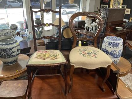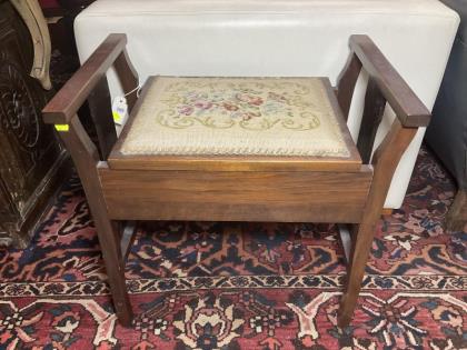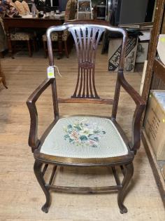 A floral tapestry carver chair.