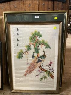 A framed colour lithograph of Kakadu on stand.