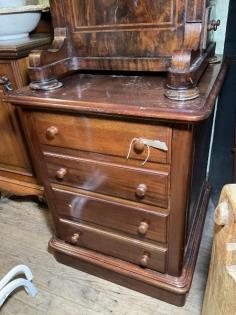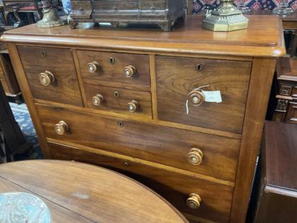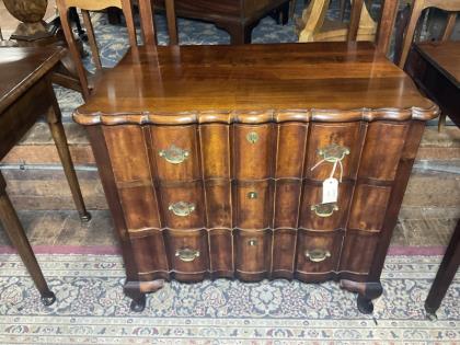 A George IV style mahogany serpentine shape small bachelor chest.