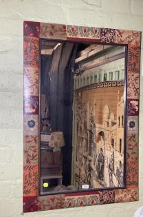 Colourful floral wooden framed wall mirror.