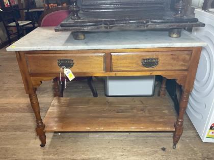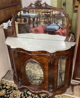 A Victorian walnut mirror back marble top credenza.