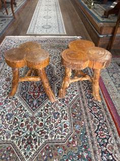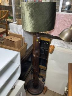 A rustic wooden tree branch standard lamp.