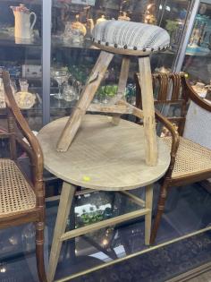 A contemporary circular table and stool.