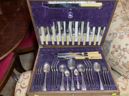 Walnut cased Art Deco canteen of cutlery.