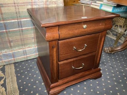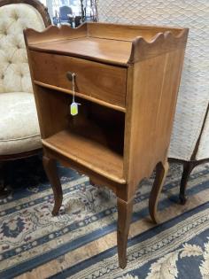 White mid century style bedside also Edwardian bedside and cane vase with flower.