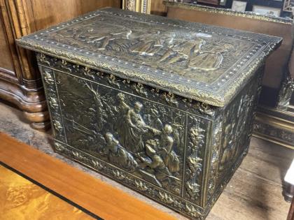 A Victorian brass fire fender.