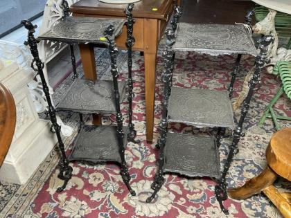 Three elm and beech cottage chairs together with butlers stand.